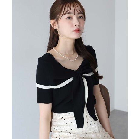 きちんと感がありながらもフェミニンさを演出するリボンニット。