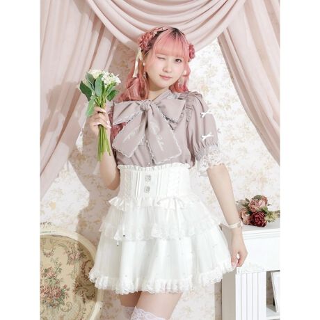 レースやフリル使いのヨークにボウタイリボンが華やかなアクセントをプラス。