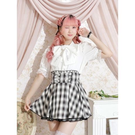 レースやフリル使いのヨークにボウタイリボンが華やかなアクセントをプラス。