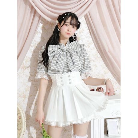 レースやフリル使いのヨークにボウタイリボンが華やかなアクセントをプラス。