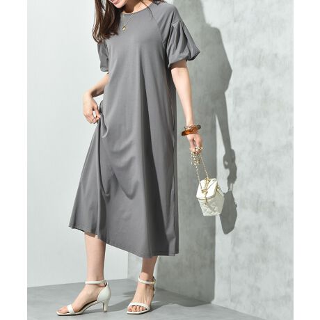 ラグランから完成する優しいバルーンスリーブで、オトナ可愛く着ていただけます。袖にはタックを施し、立体的なシルエットも魅力です。合わせる小物次第でデイリーからレジャーまで幅広く着まわせるお勧めなワンピースです。