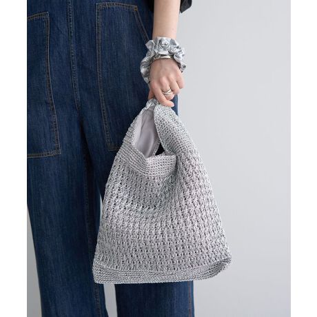煌めくメタリックコードの柄編みがスタイリッシュなトートバッグ。くしゅくしゅとさせたギャザーハンドルがフェミニンな雰囲気をプラス。程よい長さで肩掛けしやすいのも嬉しいポイントです。フラットなスクエアフォルムとシャイニーな素材感が、スタイリングにトレンド感をプラスしてくれるおすすめのアイテムです。
