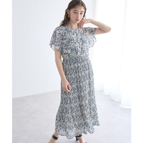 ボタニカルフラワー柄プリーツワンピース