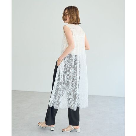 胸元のリボンやスカラップ状の裾がフェミニンで、いつものコーディネートにプラスするだけで旬な着こなしが完成します。