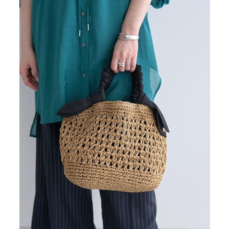 表情豊かな柄編みが春夏のシーズンスタイルに映えるコンパクトなトートバッグ。ギャザーハンドルに加えたリボンがキュートなデザインです。インナーは中身をカバーしてくれる便利な巾着タイプ。使いやすいサイズ感で幅広いシーンに活躍してくれるおすすめのアイテムです。