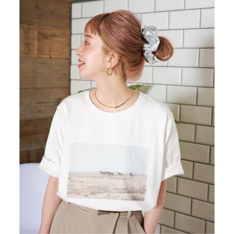 ニュアンスある雰囲気のグラフィックTシャツ。