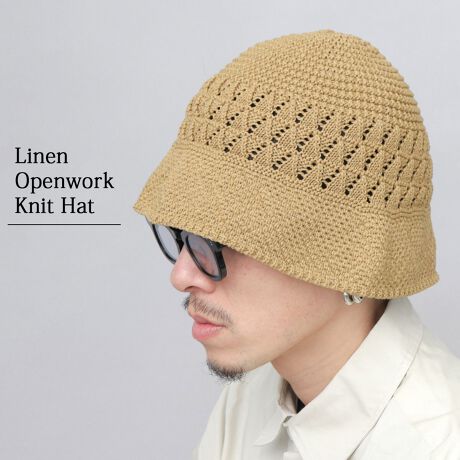 見た目にも涼しげな、透かし編みニットの切り替えが特徴のオープンメッシュニットハット。暑い時期のスタイリングのアクセントにぴったり。