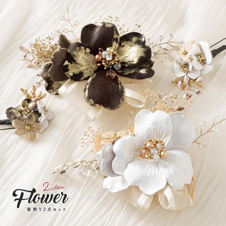 成人式におすすめなコサージュの髪飾り2点セットです。