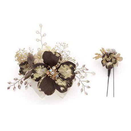 成人式におすすめなコサージュの髪飾り2点セットです。