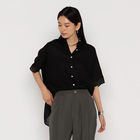 〔 +サイズ 〕 麻調合繊 シアーブラウス