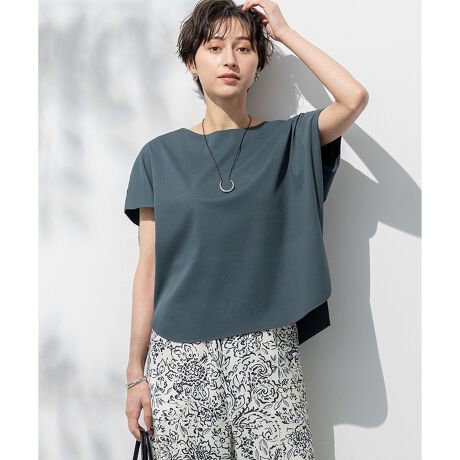 着るだけでサマになる、決まりの良いフォルムにこだわったTシャツ。深めのフレンチスリーブで気になる二の腕をカバーしつつ、裾に大きくスリットを入れ、裾を細いトリミング始末で仕上げることですっきりとしたバランスに仕上げています。カラーは、清潔感のあるホワイト(#001)、落ち着いた印象のグレー(#004)、パッと目を引くオレンジ(#020)、やさしい雰囲気のベージュ(#033)、洒落感のあるダークグリーン(#065)、可憐な雰囲気のライラック(#082)の6色展開です。