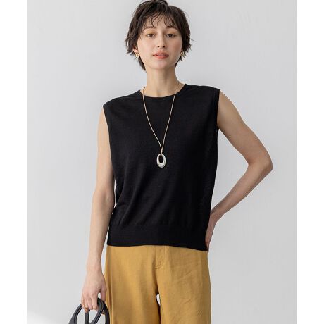 上質な素材を生かしたシンプルでシックなスリーブレスインナー。コンパクトすぎないサイズ感と少し肩に乗る袖ぐりラインなので一枚着としても着回せて、ボリュームのあるボトムとバランスよく決まります。同素材のカーディガンと合わせれば室内外の気温にも微調整でき、真夏まで涼しげなスタイリングが決まる汎用性のあるアイテムです。カラーは、麻本来のナチュラルなカラーが活きたベージュ(#033)、パッと華やぐマゼンタピンク(#011)、シックな大人のブラック(#005)の3色展開です。