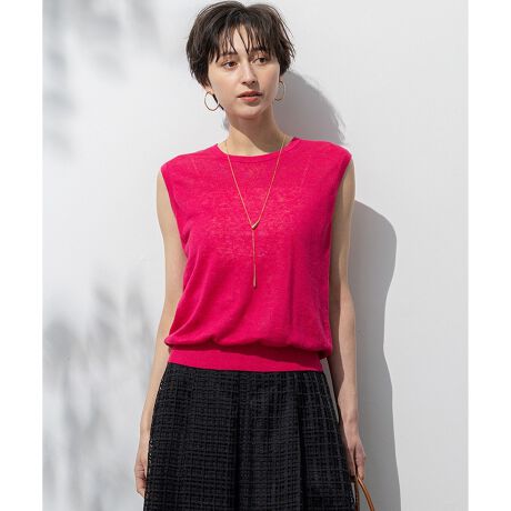 【洗える】ピュアリネンハイゲージ ノースリーブ ニット