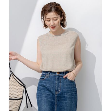 上質な素材を生かしたシンプルでシックなスリーブレスインナー。コンパクトすぎないサイズ感と少し肩に乗る袖ぐりラインなので一枚着としても着回せて、ボリュームのあるボトムとバランスよく決まります。同素材のカーディガンと合わせれば室内外の気温にも微調整でき、真夏まで涼しげなスタイリングが決まる汎用性のあるアイテムです。カラーは、麻本来のナチュラルなカラーが活きたベージュ(#033)、パッと華やぐマゼンタピンク(#011)、シックな大人のブラック(#005)の3色展開です。