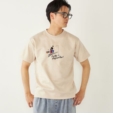 SHIPS Colors:ポリエステル フェイクスエード エンブロイダリー Tシャツ