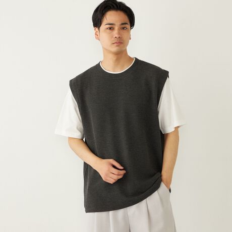 ベストを重ね着したようなデザインで、この1枚で着こなしが様になるトップスです。