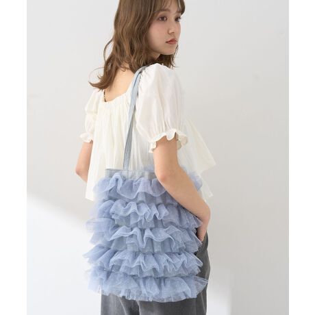 シアーチュール素材で仕立てたデザインバッグ。ギャザーをたっぷりと寄せたティアードフリルが華やかで、コーディネートのアクセントとして活躍します。スタイリングに馴染みやすいカラー展開にも注目。デイリーにはもちろん、荷物の多い旅行時のサブバッグとしてもおすすめの一品です。※モデル着用画像は、光の当たり具合で色味が違って見える場合がございます。※お使いのモニター環境によって商品の色味が違って見える場合がございます。
