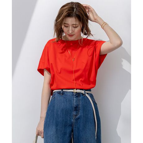 着るだけでサマになる、決まりの良いフォルムにこだわったTシャツ。深めのフレンチスリーブで気になる二の腕をカバーしつつ、裾に大きくスリットを入れ、裾を細いトリミング始末で仕上げることですっきりとしたバランスに仕上げています。カラーは、清潔感のあるホワイト(#001)、落ち着いた印象のグレー(#004)、パッと目を引くオレンジ(#020)、やさしい雰囲気のベージュ(#033)、洒落感のあるダークグリーン(#065)、可憐な雰囲気のライラック(#082)の6色展開です。