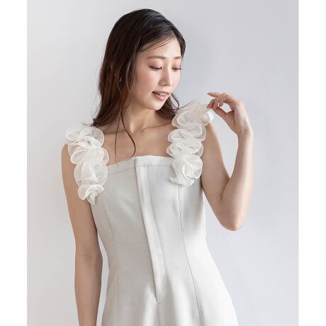 ・華やかさを高めてくれる肩の柔らかなシフォンフリル