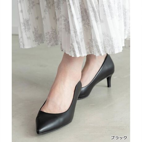 ベーシックなデザインながらも、すっきりとしたシルエットが女性らしいパンプス。