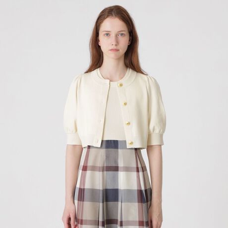 フロントボタンを留めたプルオーバー風の着用も今年らしく、おすすめです。