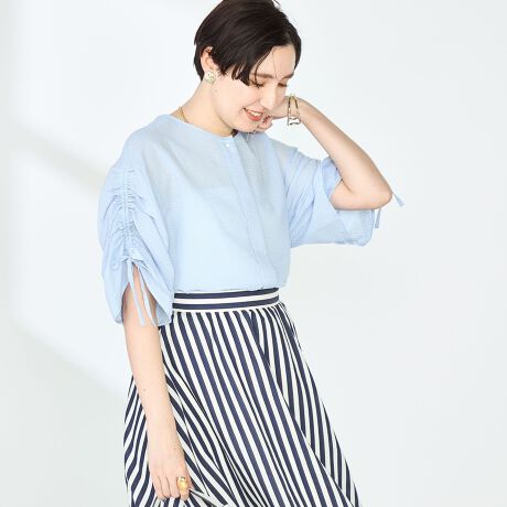 ・ポコポコとした表情のあるサッカー素材を使用した、夏らしく涼し気な1枚