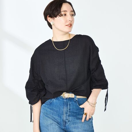 ・袖のドロストデザイン画ポイントの着映えブラウス