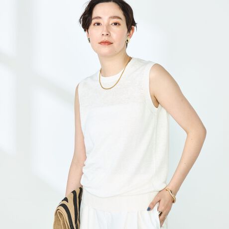 ・定番人気のフレンチリネンシリーズのノースリーブプルオーバー