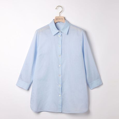 きれいめなカジュアルスタイルにフィットする、シーズンライクなチュニックブラウス。コットンと麻をブレンドしたやや透け感のある素材を採用しており、軽やかな着心地が魅力です。手首の見える袖丈、コンフォートなシルエットに仕上げています。