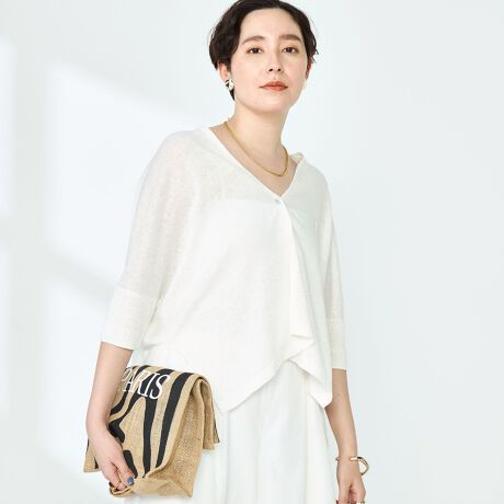 ・定番人気のフレンチリネンシリーズの5分袖カーディガン