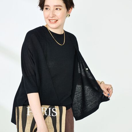 ・定番人気のフレンチリネンシリーズの5分袖カーディガン