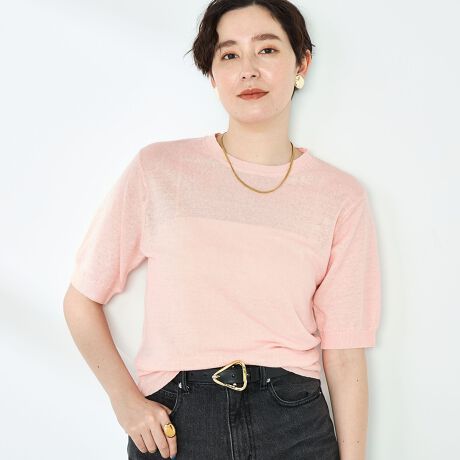 《アンサンブル対応》《手洗い可能》フレンチリネン5分袖プルオーバーニット