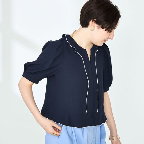・ペプラムでショート丈のデザインで、ジャケットのインナーや羽織としても幅広く着回せる1枚