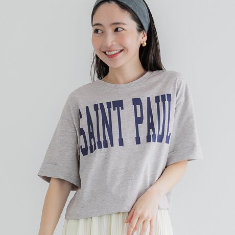 クロップド丈ロールアッププリントTシャツ 全4色