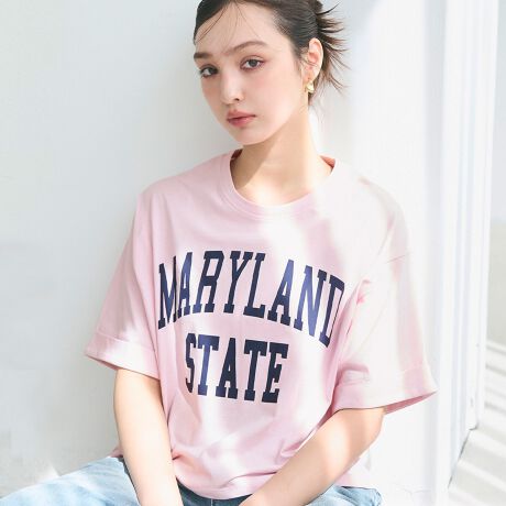 クロップド丈ロールアッププリントTシャツ 全4色