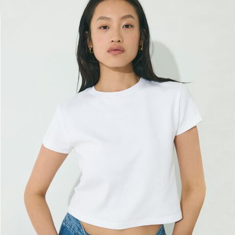 シンプルでありながら、女性らしさが引き立つコンパクトミニTシャツ