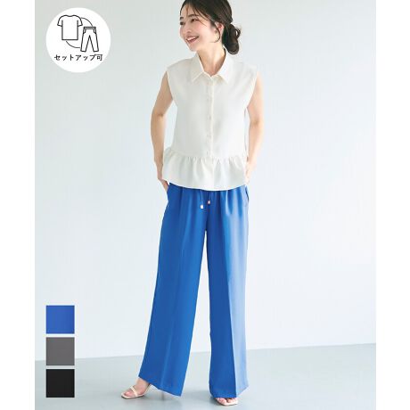 【シワになりにくい】とろみツイルイージーワイドパンツ 全2色