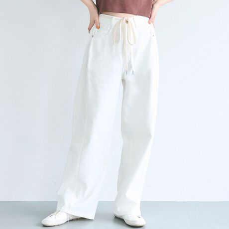 ウエスト紐付きで、いつものデニムスタイルに遊び心をプラス。