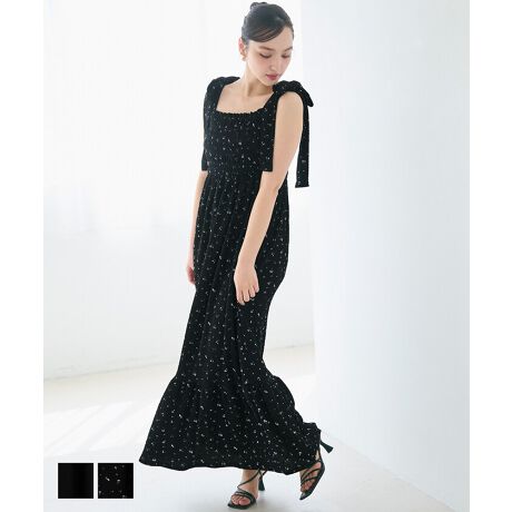 程よいフィット感を生むシャーリング加工に、肩の大きめリボンがアクセント。