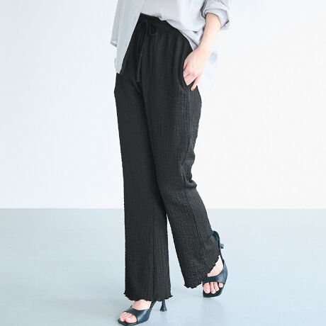 リラクシーかつ美脚効果◎クロスシャーリングセミフレアパンツ