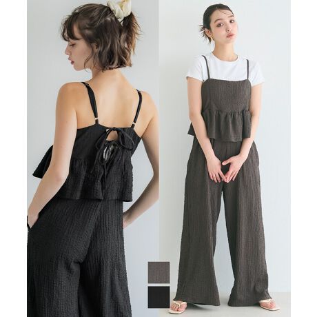 【シワが目立ちにくい】クロスシャーリングペプラムオールインワン 全2色