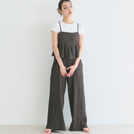 【シワが目立ちにくい】クロスシャーリングペプラムオールインワン 全2色