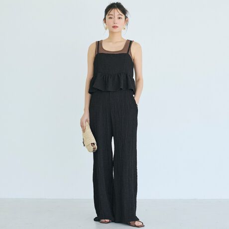 クロスシャーリング×ペプラムが映える、着映えも快適さも叶えるキャミオールインワン
