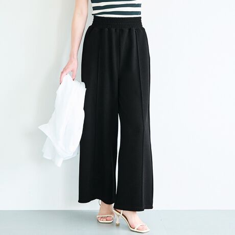 表情のあるエンボス素材×センターシームで魅せる、美シルエットワイドパンツ