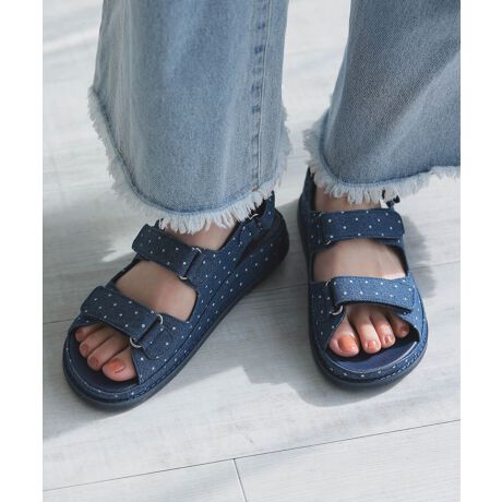 カジュアルなデニム×ドットの2パターンのサンダル。