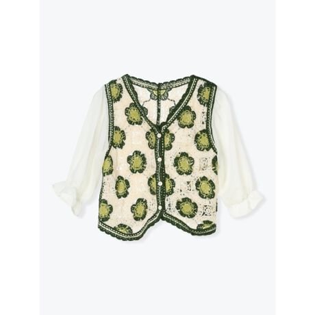 ・かぎ針ベストを着ている様なドッキングデザイン。