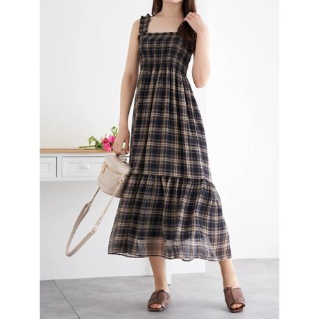 シアーチェックシャーリングワンピース