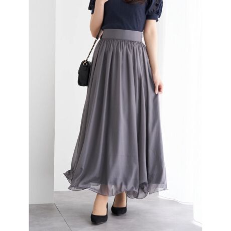 透け感のあるオーガンジー素材がやわらかなムードを演出するスカート