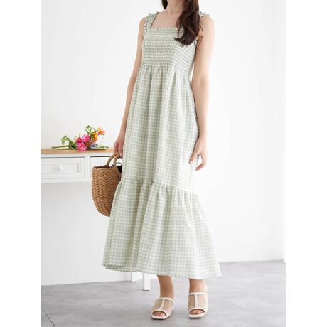 チェック柄がコーディネートのアクセントに映えるキャミワンピース。