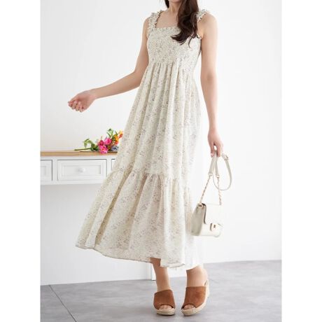 小花柄シャーリングワンピース